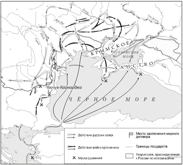 Подпишите на карте территорию Крымского ханства и Кючук-Кайнарджу.