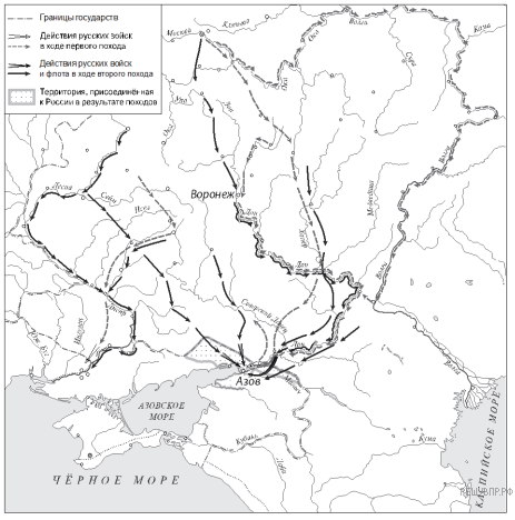 Российский монарх, который был участником обозначенных на карте походов русских войск — Пётр Первый.